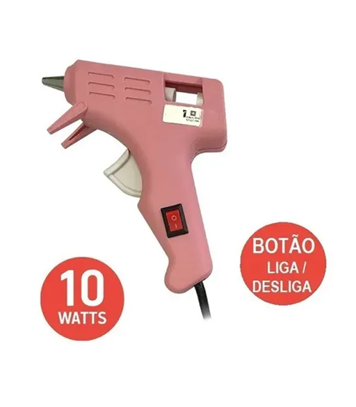 Pistola de cola quente cor rosa Bivolt ideal trabalhos em maquete, fixação de peças, montagem de peças, diversas aplicações.