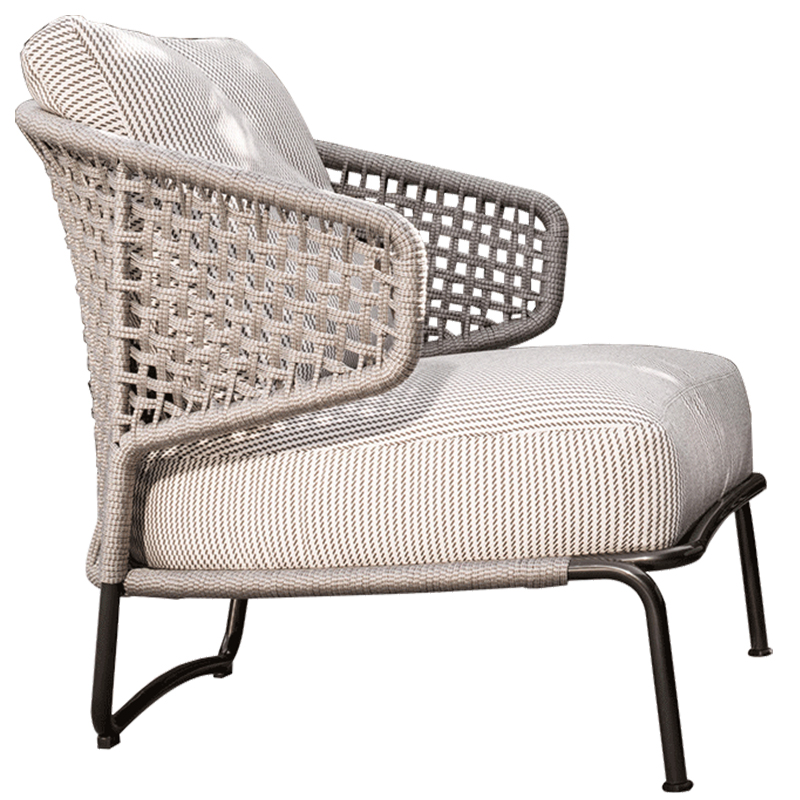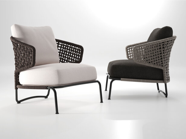 Disponível com ou sem braços, a poltrona Poltrona Lalaria traz uma personalidade leve e informal, perfeita para projetos de interiores onde a integração entre espaços internos e externos acontece de forma natural e fluida.